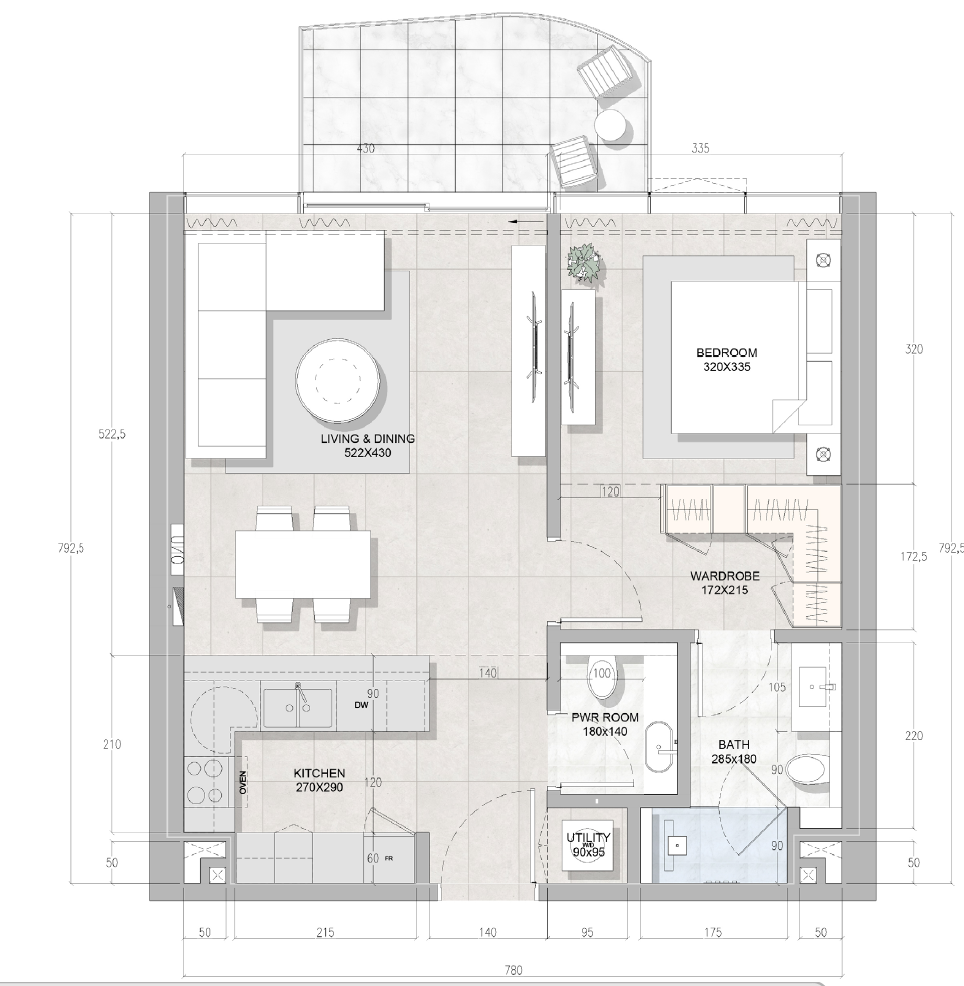 Das moderne Apartment wird derzeit erbaut und bis 2028 planmäßig fertiggestellt. Es besticht durch seine zeitgemäße Architektur und die Lage im neuen und modernen Stadtteil Downtown Mina. Ein Balkon bietet den Bewohnern die Möglichkeit, bei frischer Luft den Blick auf die liebevoll gestaltete Park- und Poolanlage zu genießen. Die Räume sind geschmackvoll ausgestattet und lassen viel Raum für individuelle Gestaltungsmöglichkeiten.